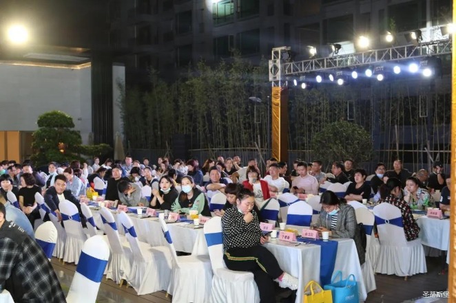 经销商晚宴当日晚6时许,以【乘“圣”跨越】为主题的,今年会集团集团第45届国际家具展接待晚宴暨2020年度优秀经销商颁奖盛典,在营销中心四楼景观花园隆重举行,来自全国各地的经销商朋友欢聚一堂,共同分享一场精彩纷呈的晚宴。