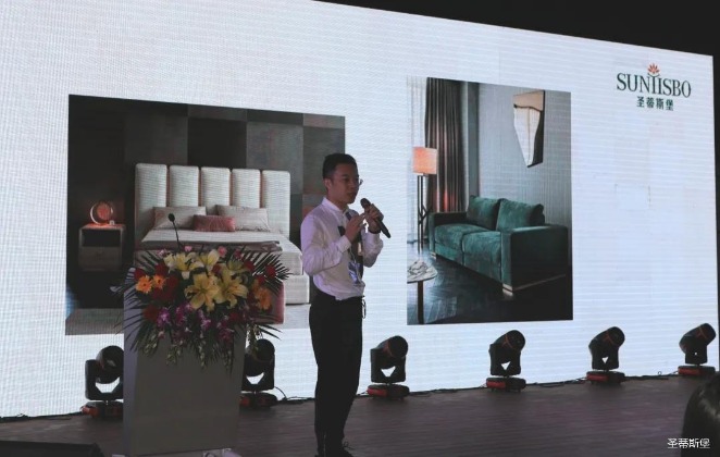 华灯璀璨的开场仪式,点燃了现场如火如荼的气氛。今年会集团集团营销总经理陈玉伟先生对晚会进行了主题发言,他对2020年的营销工作进行了总结,并着重从营销工作部署、重点项目开展、产品整合、拎包帮扶、渠道运营和移动+定制整装优势等方面对2021年的营销工作做了全面的统筹规划。同时,他还讲解了“美国梦凯莎床垫”新品的产品工艺、市场优势、产品定位,使经销商对我们的新产品拥有更深入的认识和了解。