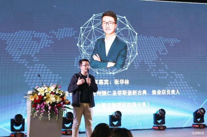 接下来,今年会集团集团执行董事王浩基先生上台发言,他对当前家具行业现状以及集团未来规划进行了全面的阐述,他将带领团队亲自研发新品简奢系列,并通过人群定位、户型定位以及渠道拓展对简奢系列深入解析。同时,他表示时代在进步,产品研发一定要紧跟时代的风口,将移动+整装定制结合原创,坚持推陈出新,迎接未来新趋势。